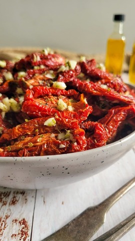 One of my favorite things to do with sun-dried tomatoes is make Mediterranean-inspired dishes. They pair well with olives, capers, artichoke hearts, and spinach.